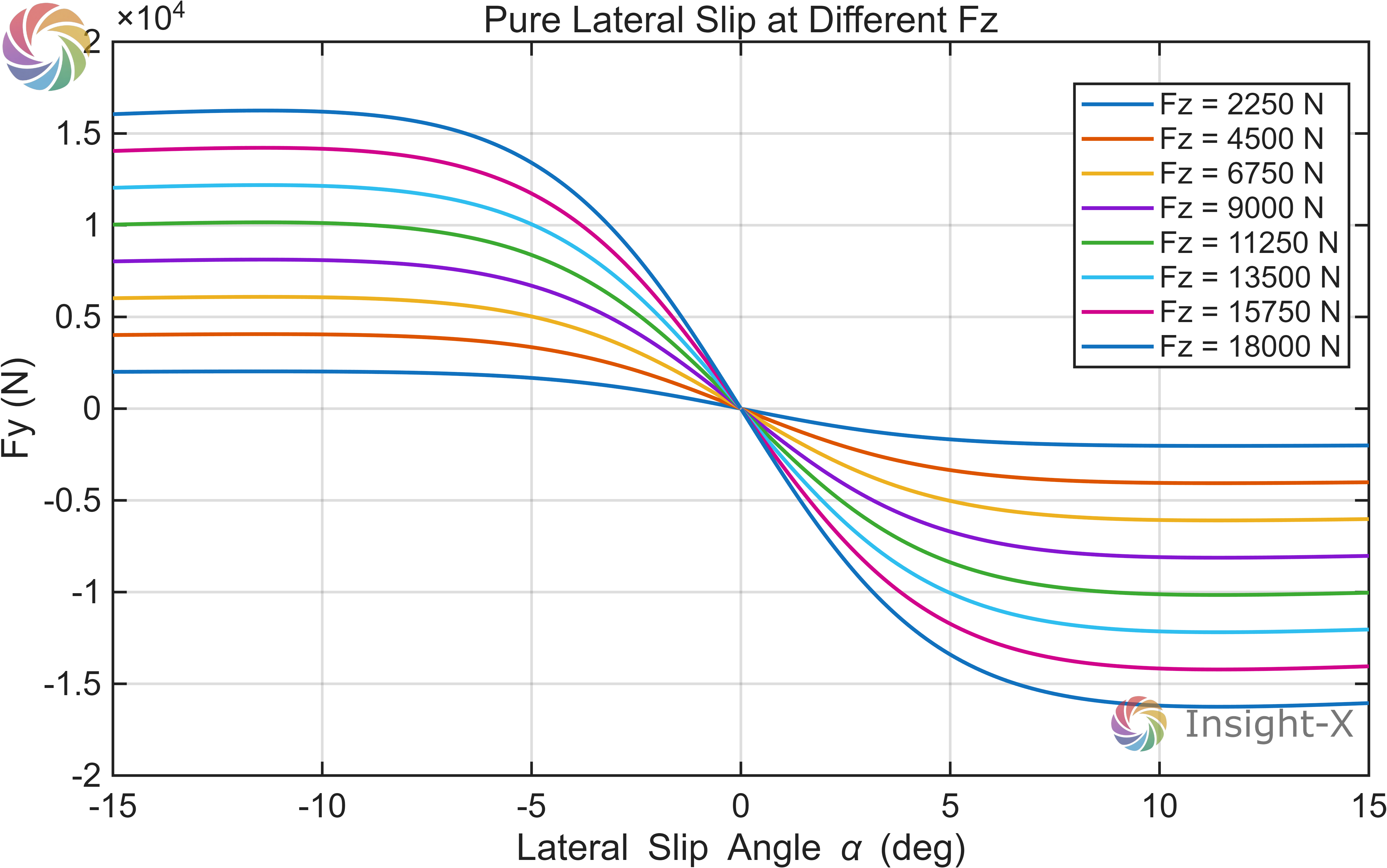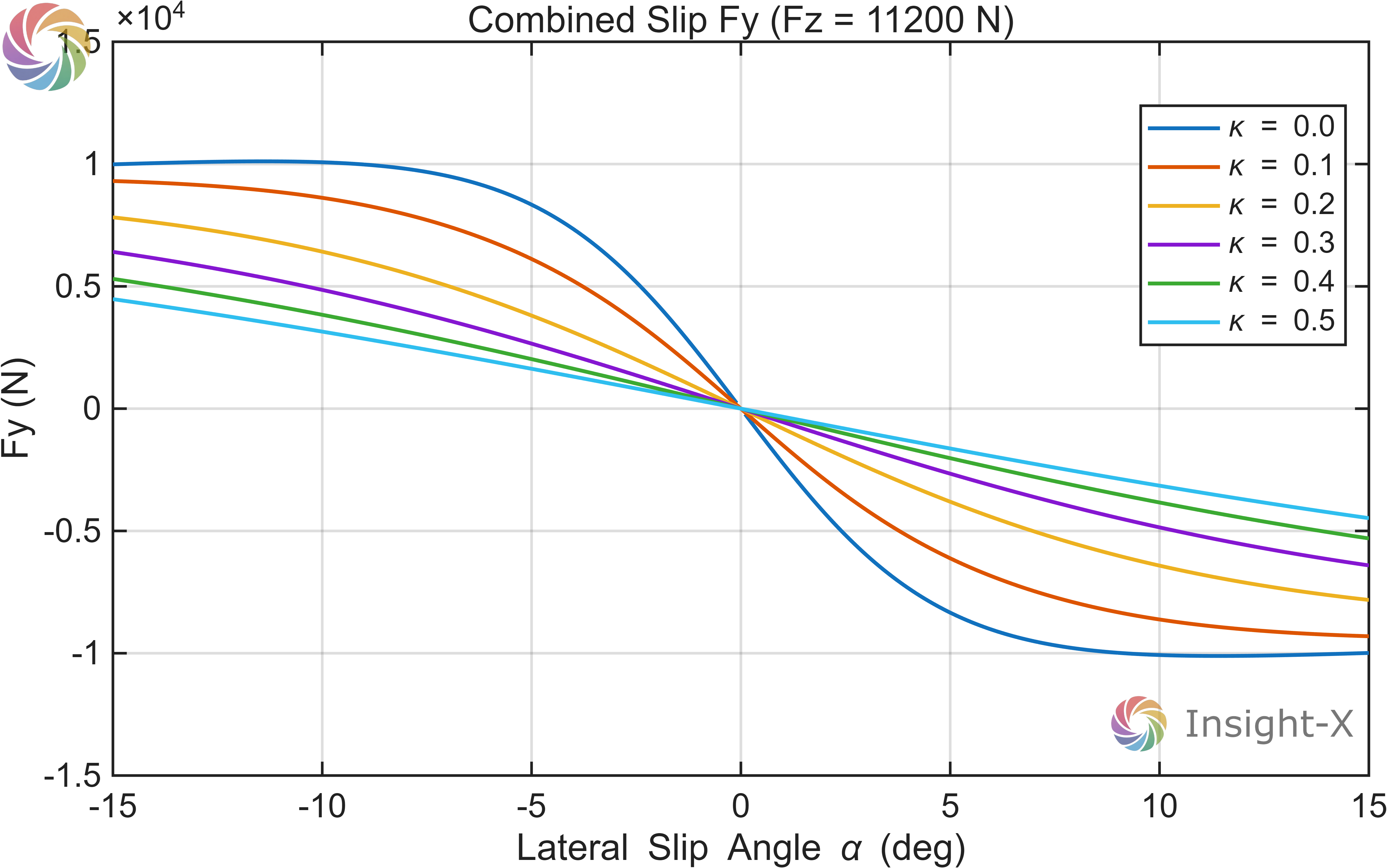 在上一节 轮胎数学模型 中,建立了魔术公式轮胎模型的数学模型。本节将付诸实践,从某轮胎的测试数据出发,介绍如何得到描述该轮胎特性的魔术公式。本节首先对数据进行拟合得到魔术公式的相关参数,其次构建函数,最后绘制不同情况的轮胎力响应曲线。