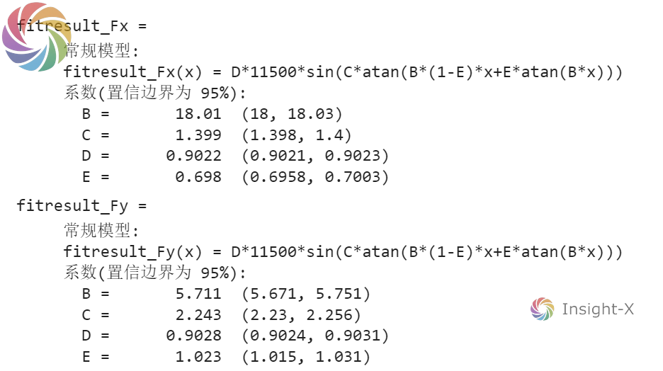 得到结果如下图所示,将结果带回原公式,则可以得到相应的魔术公式轮胎模型。
